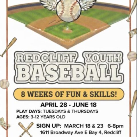 Join Redcliff Youth Baseball, Wednesday March 18th, and Monday March 23rd from 6:00 – 8:00pm at the GVN building, 1611 Broadway Ave E, for your opportunity to register for the season!