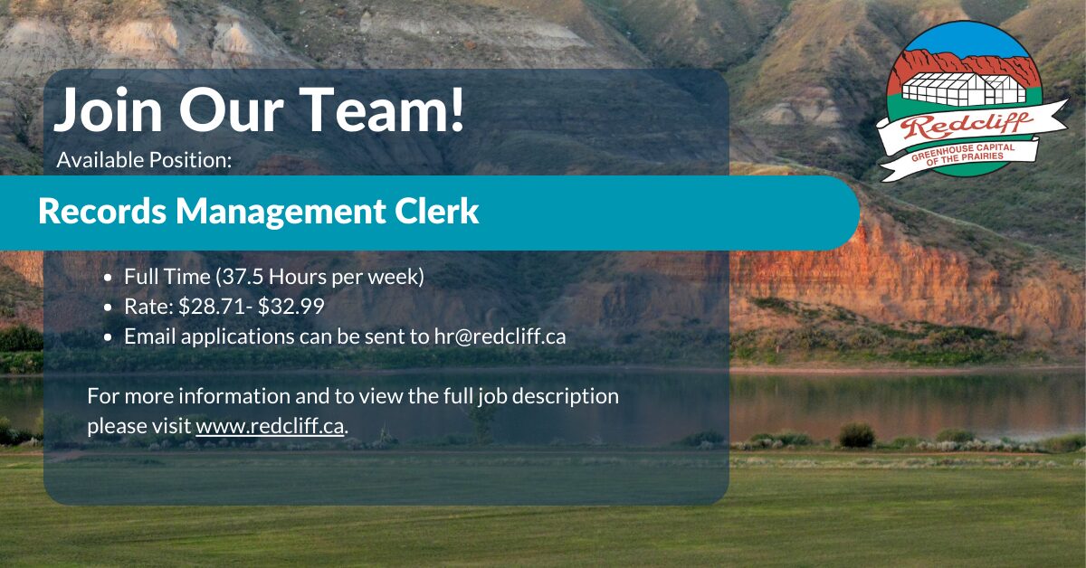 Applications will also be accepted via email in pdf format to hr@redcliff.ca. Applications can also be delivered in person to Town Hall located at #1 – 3 Street NE, Redcliff, AB.