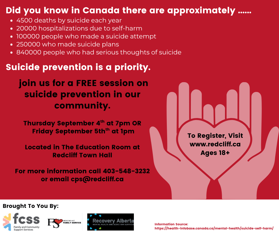 Medicine Hat Family Service, and Recovery Alberta are proud to announce this FREE session on suicide prevention in our community.