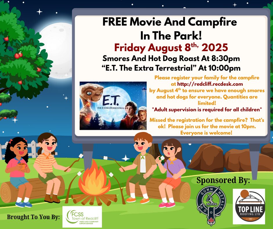 The smores and hotdog roast will now take place at 8:00pm, with “E.T. The Extraterrestrial” beginning at 9:30pm!