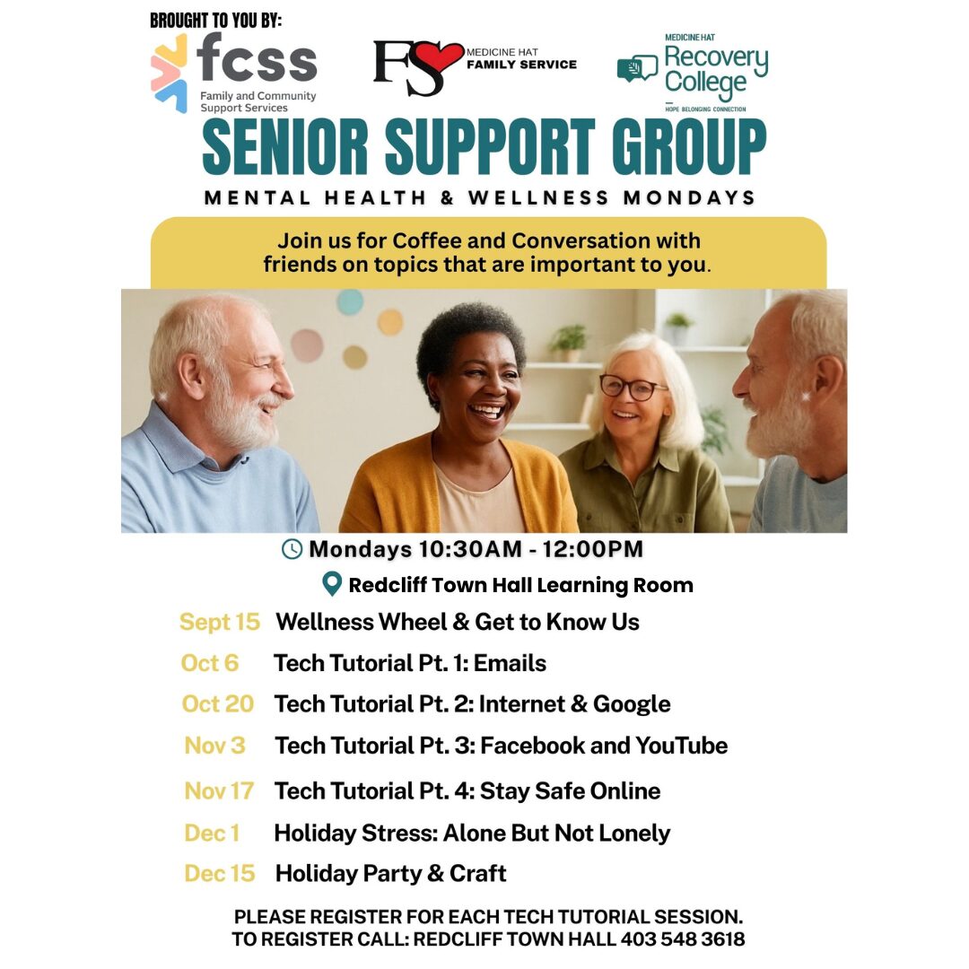 Join The Redcliff FCSS and Medicine Hat Family Service for Senior Support Group!