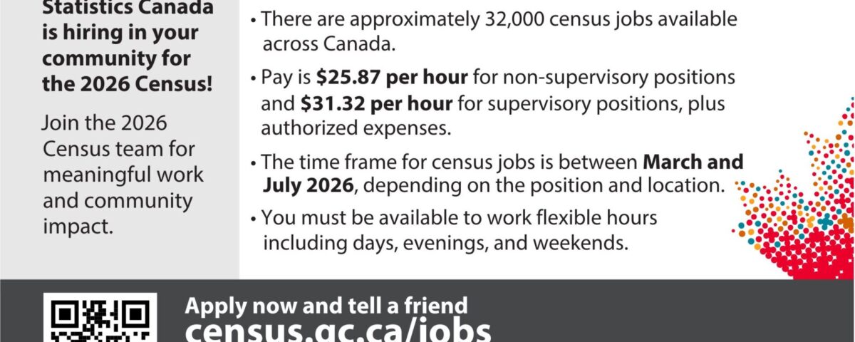 Statistics Canada is looking to hire staff in Redcliff in preparation for the 2026 Census!